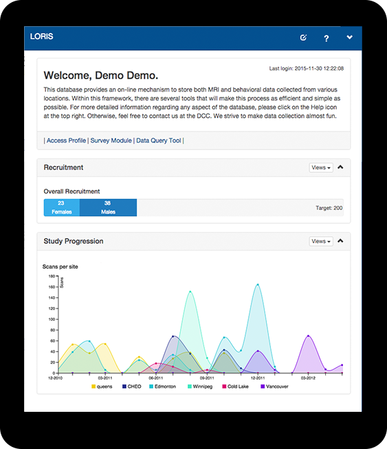 LORIS’ OPEN SOURCE codebase and user-friendly Configuration module make it easy and transparent to tailor LORIS to any study design and to add custom features. [read more]